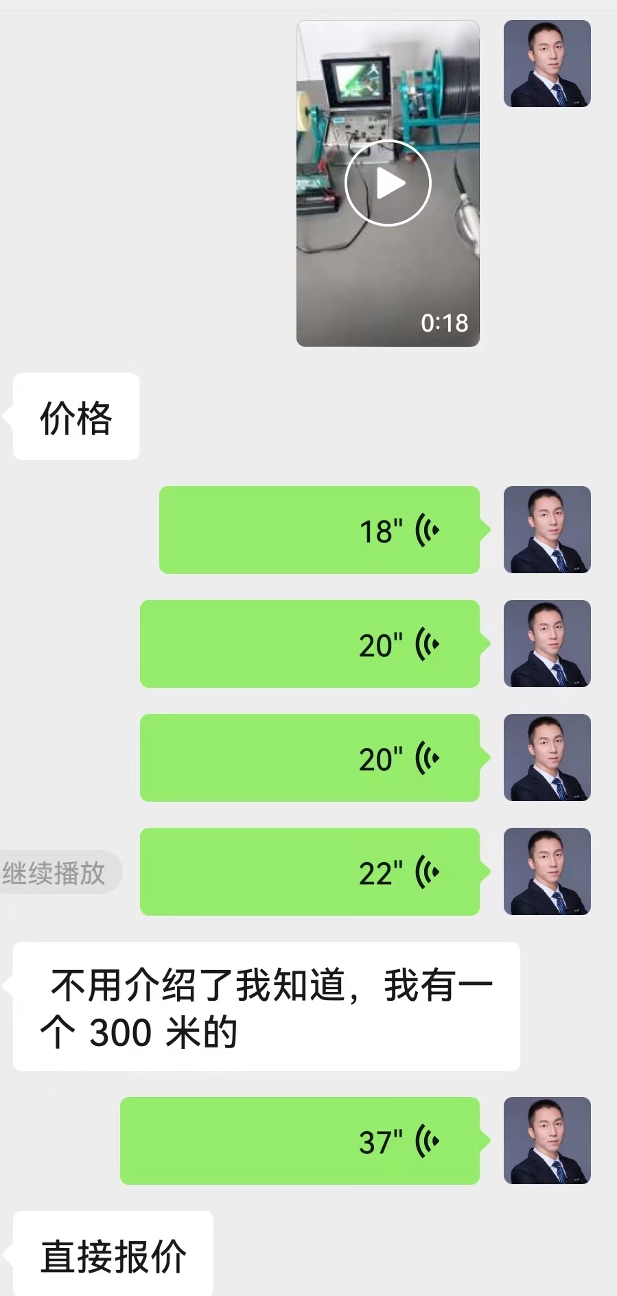 12號上午十點左右,河南的一位客戶來電咨詢井下電視。當時正在開車,電話簡短溝通后,我說你加我VX吧,一會兒我到目的地后,咱們VX上具體聊.